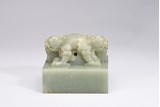 A LARGE CELADON JADE 'MYTHICAL BEAST' SQUARE SEAL