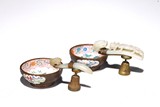 TWO WHITE JADE DRAGON BELT HOOKS AND ENAMEL CUPS