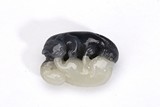 A WHITE AND BLACK JADE CARVING OF TWO CATS
