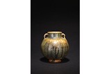 A RUSSET SPLASHED GLAZED HANDLED JAR