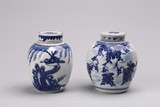 A PAIR OF BLUE AND WHITE JARS AND COVERS