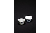 A WUCAI BLUE AND WHITE BOWL AND CUP