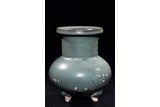 A JUN TYPE CELADON GLAZED TRIPOD VASE