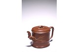 A CHINESE BAMBOO FORM YIXING TEAPOT