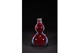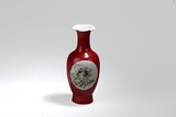 民國 紅釉開光山水圖瓶 華盛珍品款
