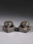 A PAIR OF DARK SHOUSHAN STONE BUDDHIST LION SEALS