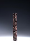 A CHINESE HARDWOOD INSCRIBED INCENSE CYLINDER