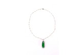 A GREEN JADEITE PENDANT WITH DIAMONDS