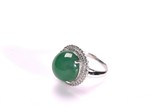 翡翠橢圓型18K白金鑲嵌鑽戒指