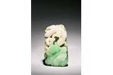 A GREEN JADEITE CABOCHON AND DIAMOND RING