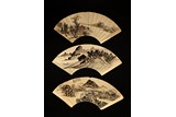 A GROUP OF THREE LANDSCAPE FAN PAINTINGS