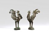 A PAIR OF GOLD AND SILVER INLAID BRONZE PHOENIXES
