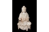 A LARGE MARBLE CARVED FIGURE OF GUANYIN
