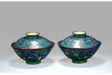 A PAIR OF CLOISONNE ENAMEL BOWLS WITH COVER