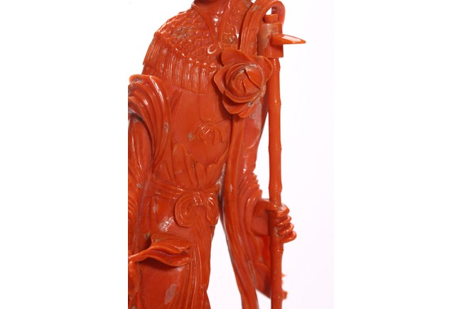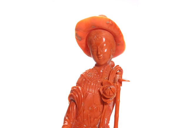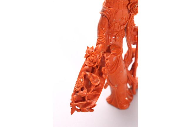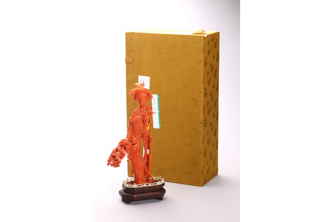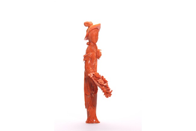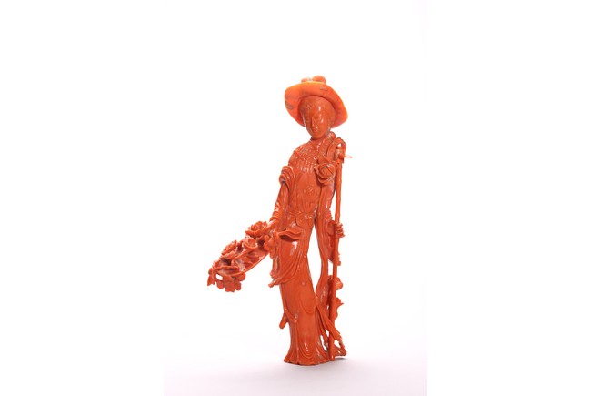 Depicting the Consort Rong of Qianlong Emperor,better known as the ’Fragrant Concubine‘,holding a garden hoe on left hand,and a large shovel filled with flowers on right hand,all supported on zitan silver wire inlaid stand. Qing Dynasty period.