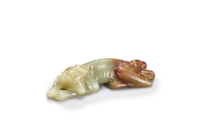 Compare a similar jade recumbent dog,sold in Christie's Hong,November 2014,for HKD 475,000. https://www.christies.com/lot/lot-5848420 Provenance: Private collection,Los Angeles,acquired in Hong Kong in 1990s.
