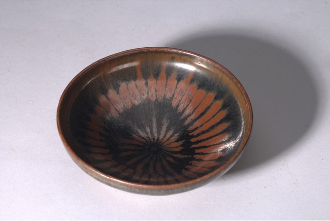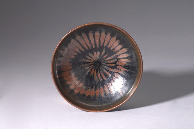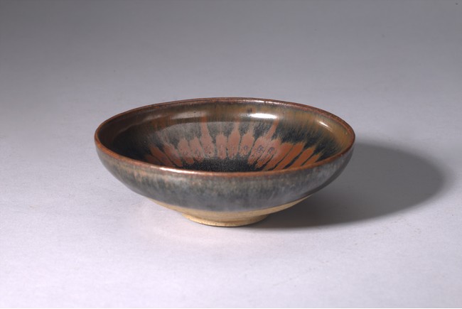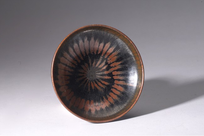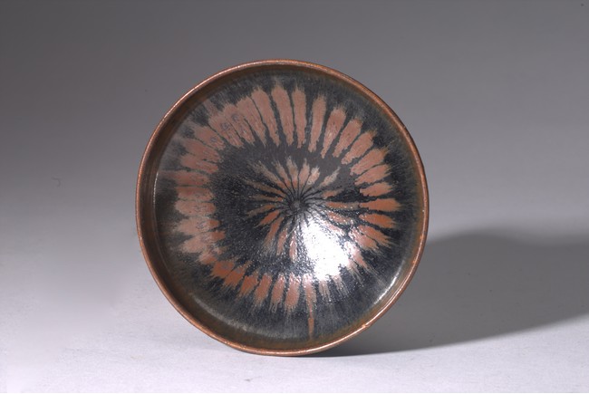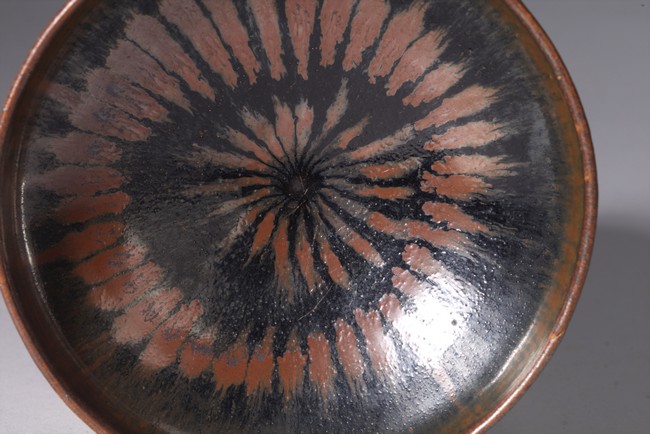 The shallow rounded sides rising to an everted rim,covered overall in a black glossy glaze with vertical radiating russet streaks to the interior. Song/Jin Dynasty period.