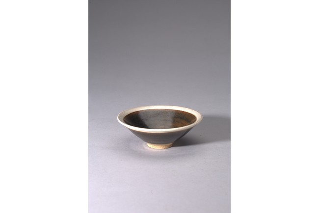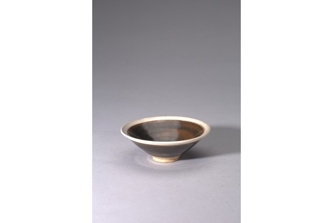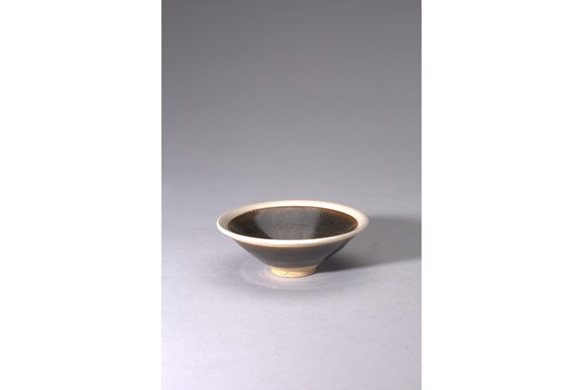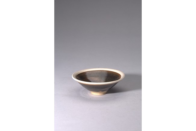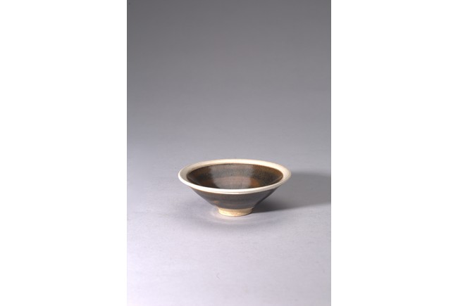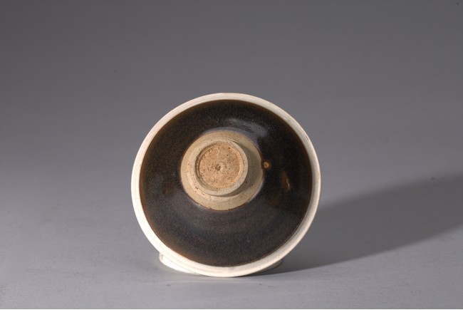 The bowl has shallow,flared sides covered inside and out with a blackish-brown glaze ending in a neat line at the edge of the white border at the rim. Song Dynasty period.