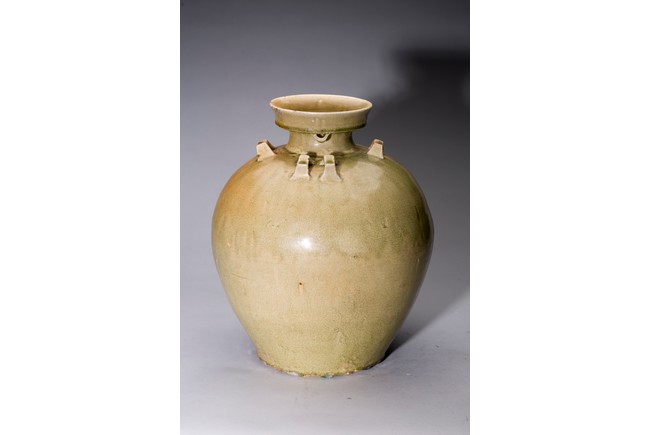 The Southern and Northern Dynasties (420 AD - 589 AD) period is an important period in the history of Chinese ceramics development. It was during this period that Chinese ceramic craftsmen constantly changed the glaze formula,finally achieving a mature period of celadon glaze firing. Compare a similar celadon glazed jar,unearthed from the Xiangshan kiln site in Zhejiang Province (fig. 1),and smaller celadon jar (30 cm height)(fig. 2) in the collection of Nanchang Museum,Jiangxi,China. Provenance: Property from the private collection of the Grayson family,Los Angeles & Portland
