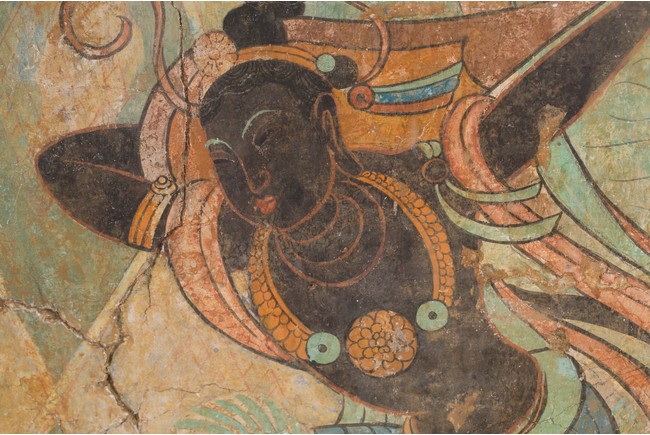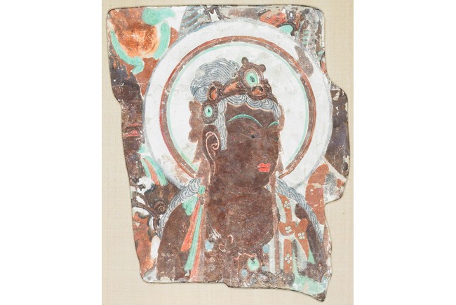 Compare the Dunhuang wall fragment in the collection of Harvard Art Museum, from the south wall of Mogao Cave 320, Dunhuang, Gansu province, with similar pigment tone and facial features. (Fig. 1) Provenance: Property from the private collection of the Grayson family,Los Angeles & Portland Exhibition: Portland Art Museum, Oregon, 2011