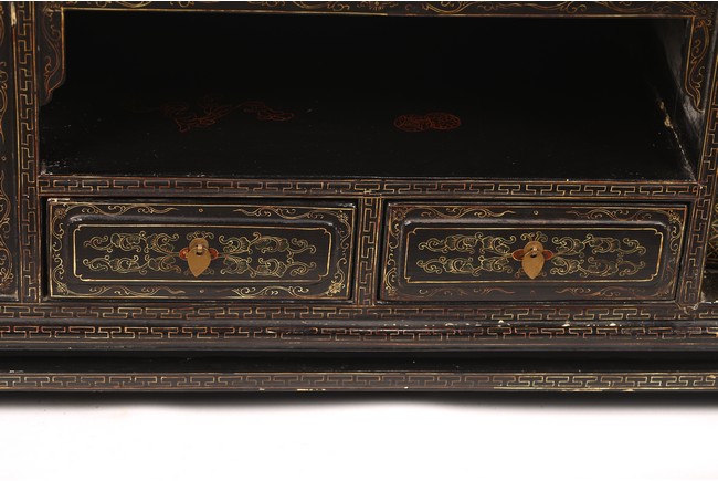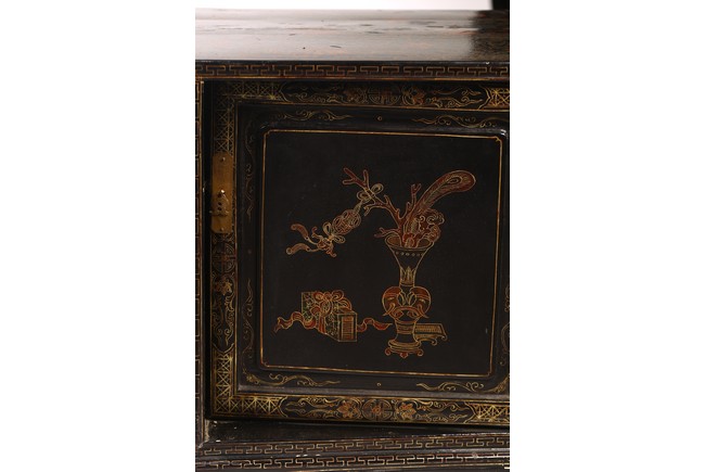 Chinese. Of horizontal form and divided into three compartments,with two drawers and a door,the top decorated with landscape scene. Qing Dynasty period.