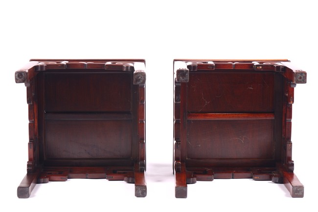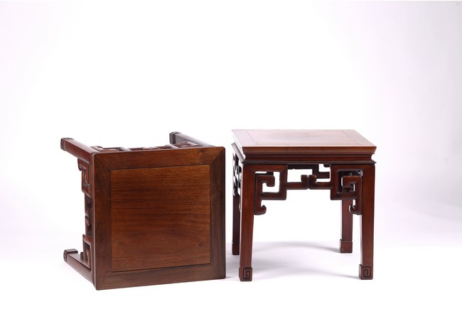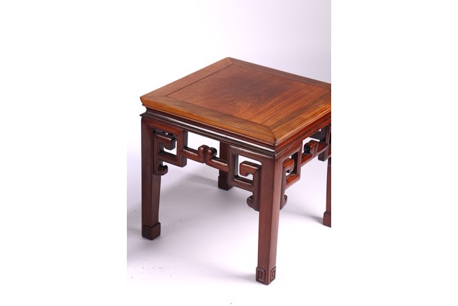 Chinese. With square top set with rosewood seat over a plain in-curving waist and apron carved with scroll-work and raised on square-section feet. Republic period,Early 20th century.