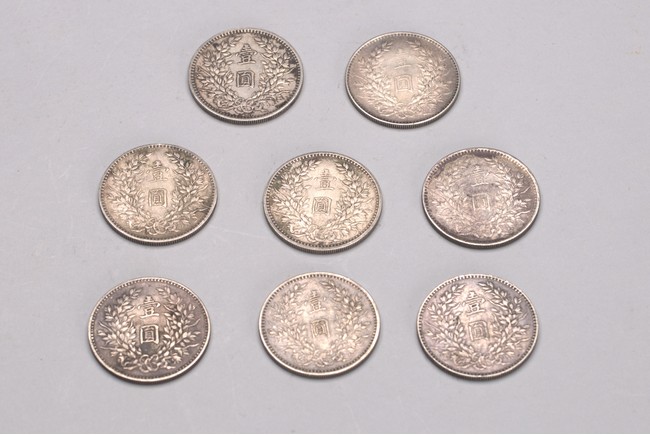 A GROUP OF NINE 'YUAN SHIKAI' SILVER COINS 袁世凱像銀幣九枚