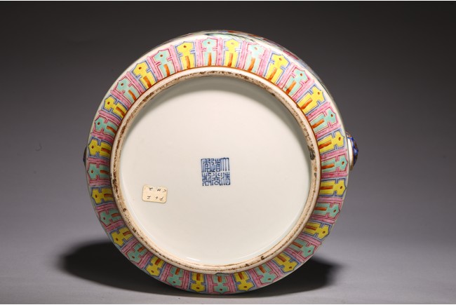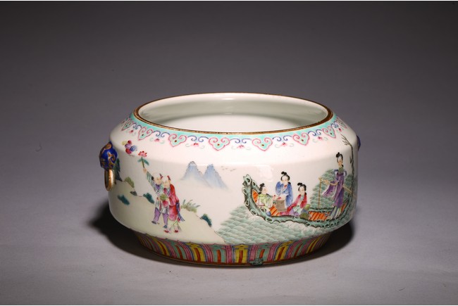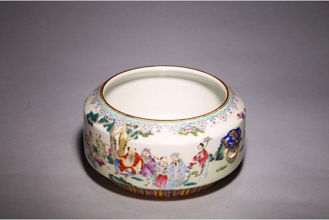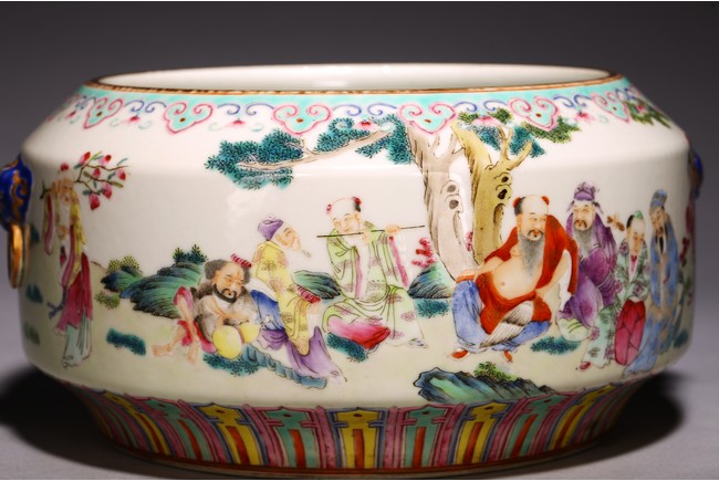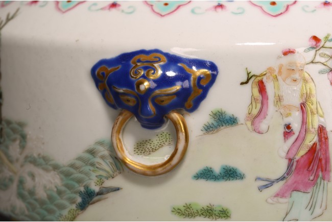 The body decorated with taoist immortals set in a garden setting,base inscribed with six character mark.