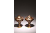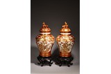 明治時期 '自嶺造'描金瓷蓋罐一對