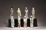 A SET OF EIGHT CHINESE FAMILLE ROSE IMMORTAL FIGURES