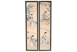 A PAIR OF SILK COLOR AND INK 'LADIES' PAINTINGS