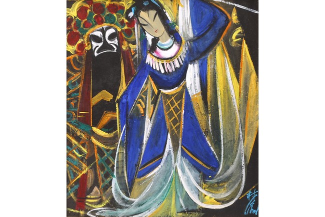 Oil on canvas. Opera Figures. Framed. Signed in Chinese at bottom right corner.