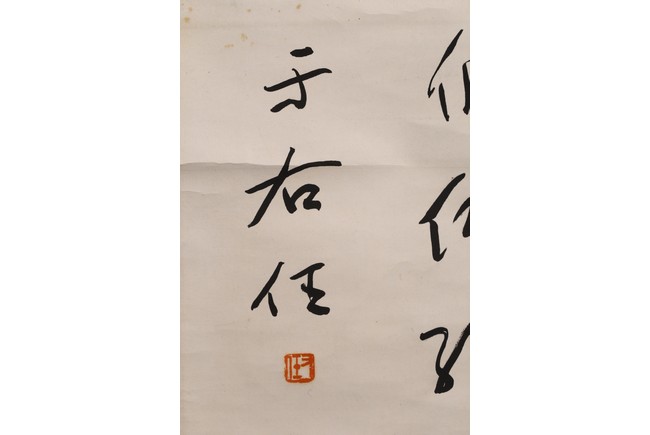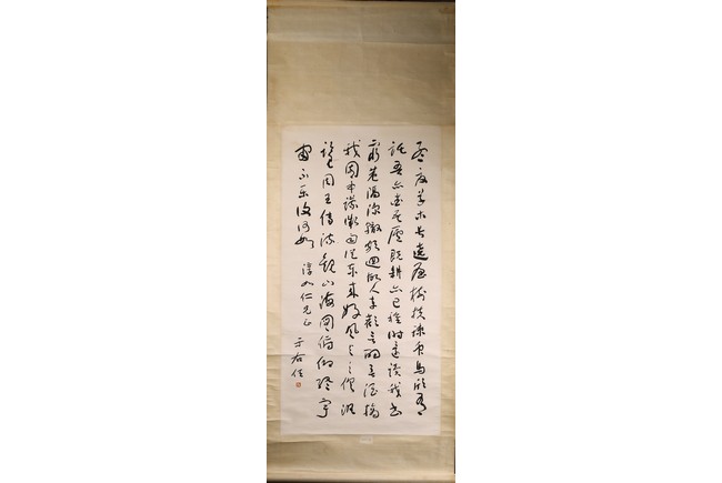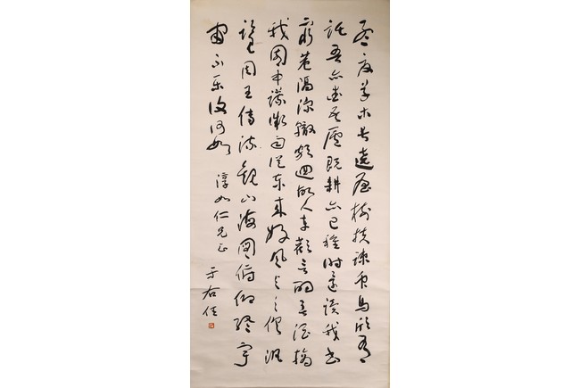Ink on paper. Poem by Tao Yuanming. Hanging scroll. With dedication to Chun Ru, signed Yu Youren with one seal mark of the artist.
