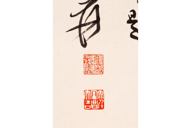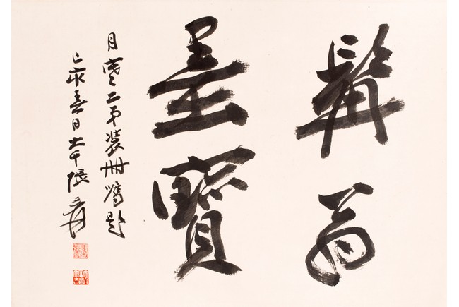 一九五六年作 共四十五開冊 題識:(錄〈千字文〉)于右任,四十五年十月。鈐印:右任。題跋:〈一〉髯翁墨寶,目寒二弟裝冊囑題,已亥春日大千張爰。鈐印:〈四十五〉目寒二弟喜得髯公草書千字文,此書不易得也,裝成冊攜與兄細讀一通,書法從碑得筆法之世無與抗手者,草書研究嘗稱第一人矣,此冊為真奇珍也。己亥四月雨後新涼復賞恭讀跋二語。蜀人張爰大千父漫記。鈐印:張爰之印,大千居士。 註: 目寒二弟應為張目寒(1902年-1980年)。安徽霍丘人,早年參加北京著名文學團體“未名社”的發起工作;先後擔任南京國民政府中央執行委員等要職,赴台後曾任後“監察院”秘書長.爲于右任先生的重要幕僚。 Provenance: Important Private collection, New York