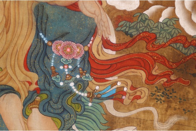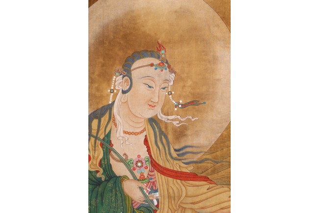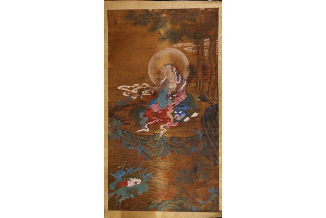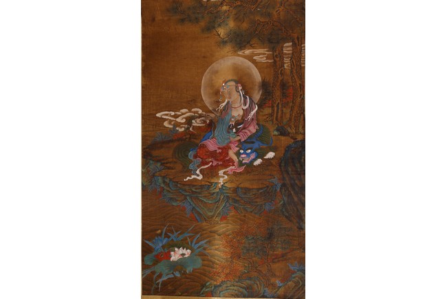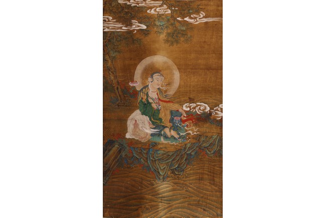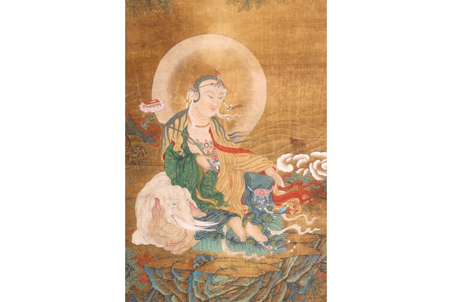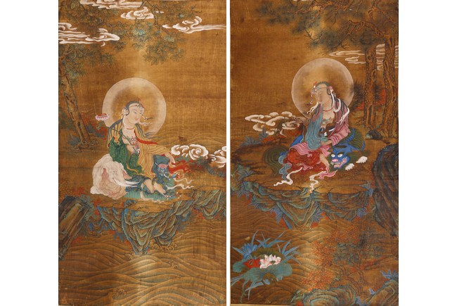 Color and ink on silk. One depicting Samantabhadra Bodhisattva, the other depicting Manjusri Bodhisattva. Mounted on paper. Anonymous.