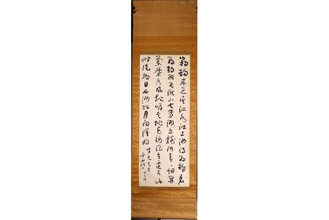 Ink on paper. Cursive script calligraphy. Hanging scroll. With dedication and signed Yu Youren, with one seal mark of the artist.
