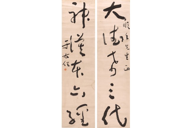 題識: 順年先生正。于右任。釋文: 大德希三代,神謨本六經。鈐印:右任 Provenance: Property from a family collection, Los Angeles, acquired in Taiwan in early years
