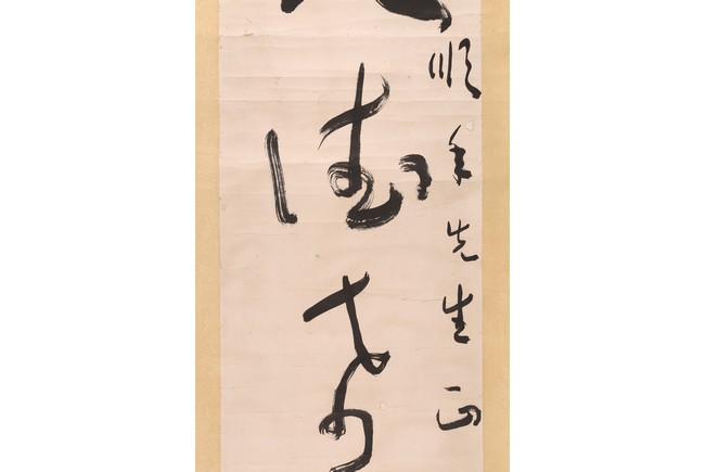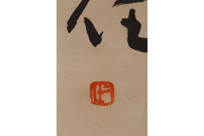 Ink on paper. Five character cursive script calligraphy. framed, dedicated to Shun Nian, signed Yu Youren with one seal mark of the artist.
