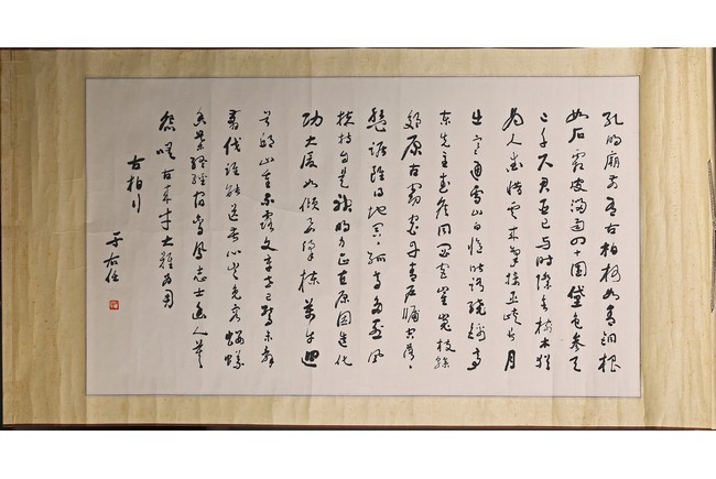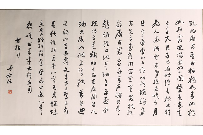 Ink on paper. Poem by Du Fu. Hanging scroll. Signed Yu Youren and with one seal mark of the artist.