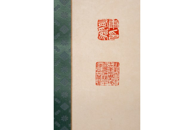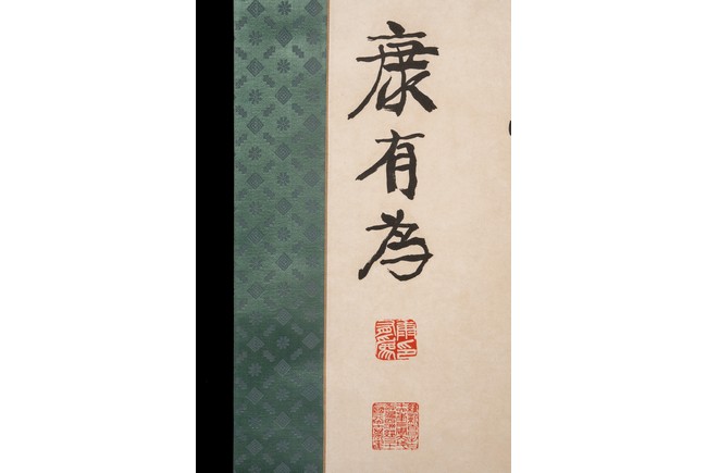 Ink on paper. Calligraphy. Hanging scroll. Signed Kang Youwei with two seal marks of the artist.