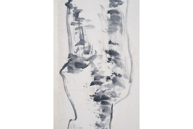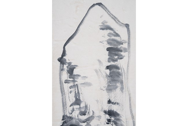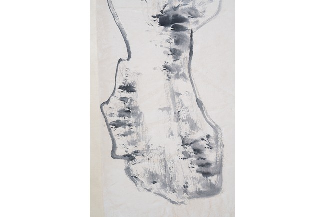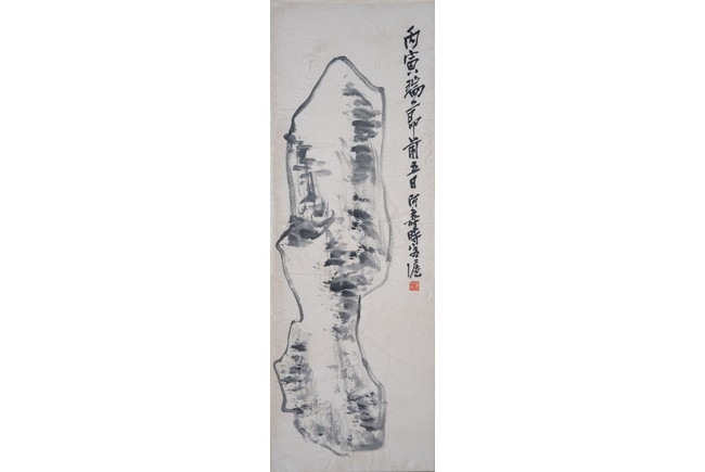Ink on paper. Rock. Hanging scroll. Inscribed and signed A Shou, with one seal mark of the artist.