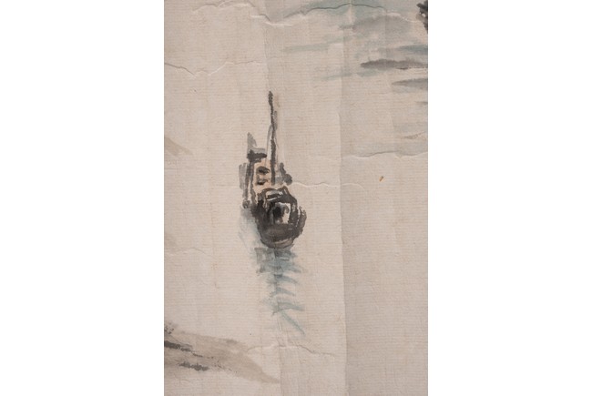 Color and ink on paper. Landscape. Mounted on paper. Inscribed and signed Ji Zhong, one seal mark.