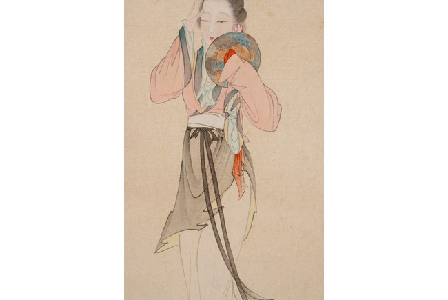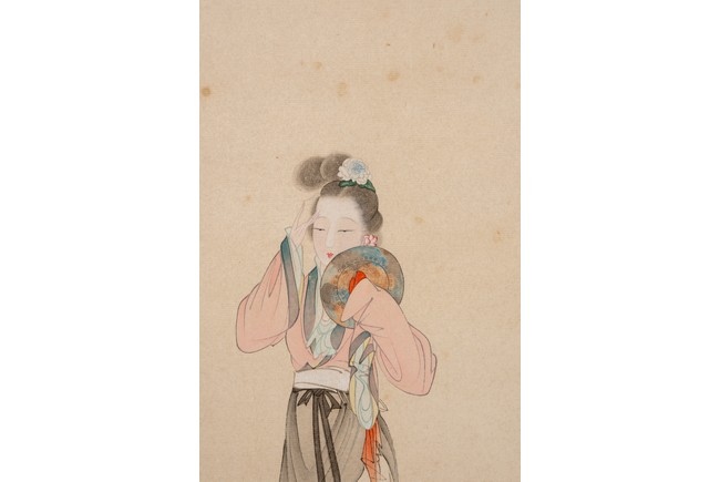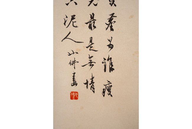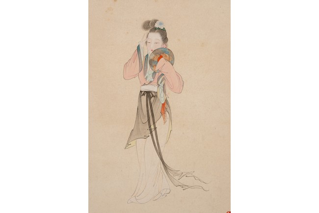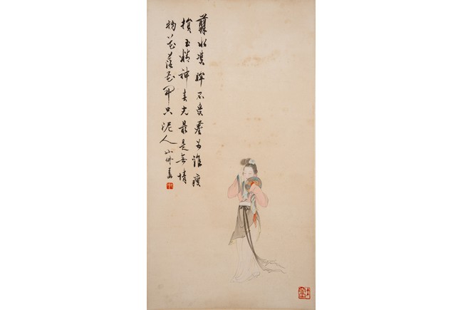 款識: 剪水雙眸不受塵,為誰瘦損玉精神。春光最是無情物,花落花開只泥人。也佛畫。鈴印:也佛 大空堂 作者介紹:胡也佛本名國華,後改名為丁文、若佛,字大空,號谷華,自署十卉廬主,浙江餘姚人。上海新華藝術專業畢業,曾任上海商務印書局編輯、國民書局經理。工書畫,學宗仇十洲,擅作仕女,間寫宋元一路山水,雋逸過人。