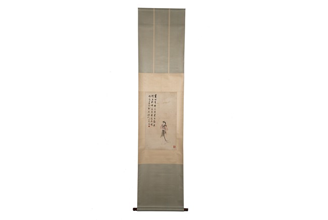 Color and ink on paper. Beauty. Inscribed and signed Ye Fo, with one seal mark of the artist. Hanging scroll.