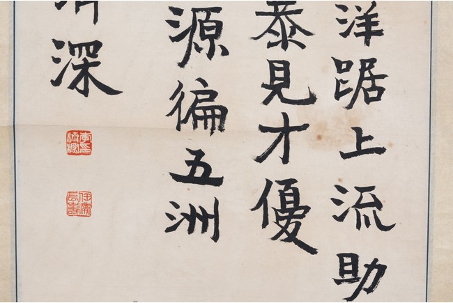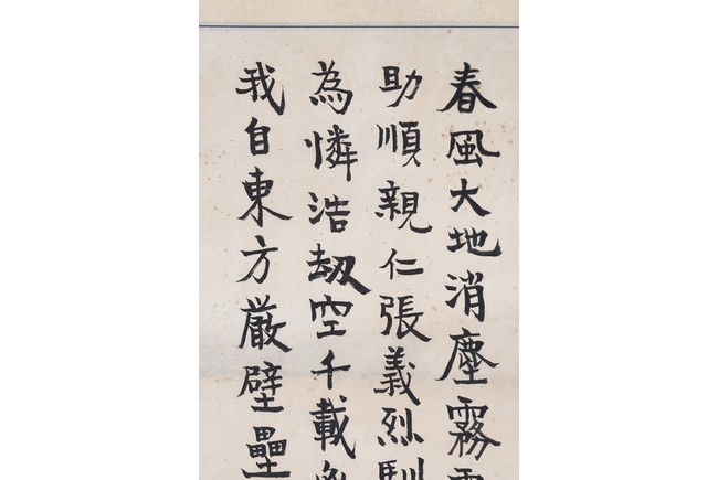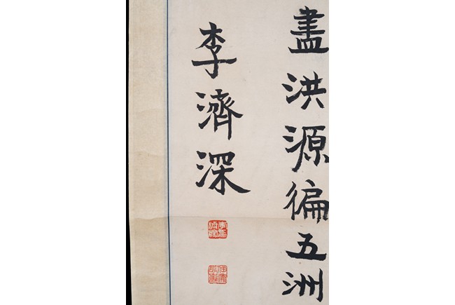 款識: 春風大地消塵霧,霸氣重洋踞上流。助助順親仁張義,烈馴頑戢暴見才。優為憐,浩刃空。千載無盡,洪源偏五洲。我自東方嚴壁壘。李濟深。鈴印:李濟深印 任瀚長壽