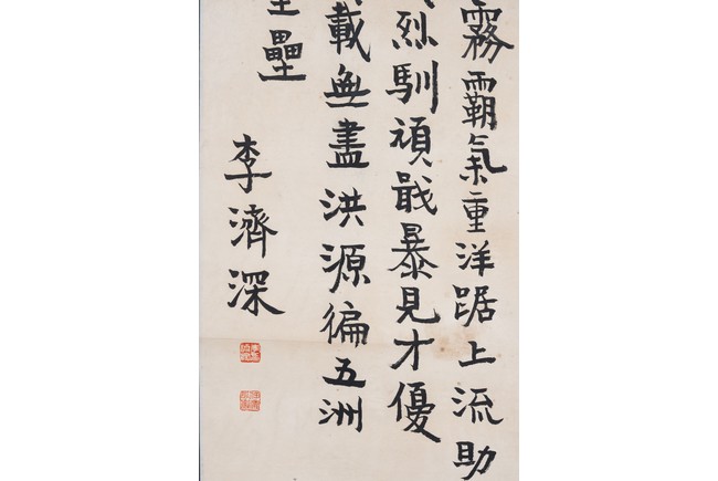 Ink on paper. Calligraphy. Signed Li Jishen, with two seal marks of the artist. Hanging scroll.