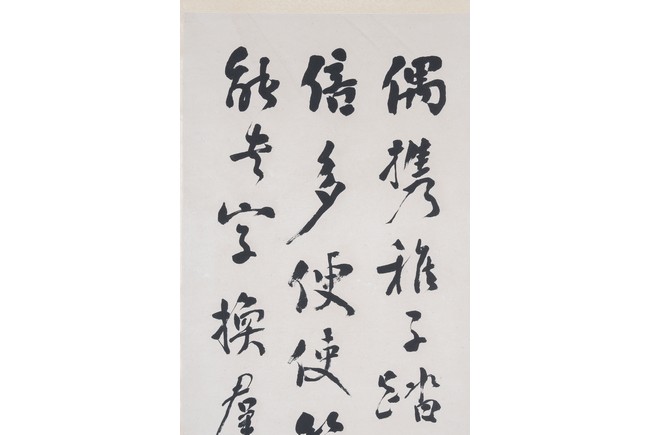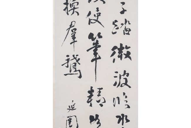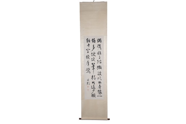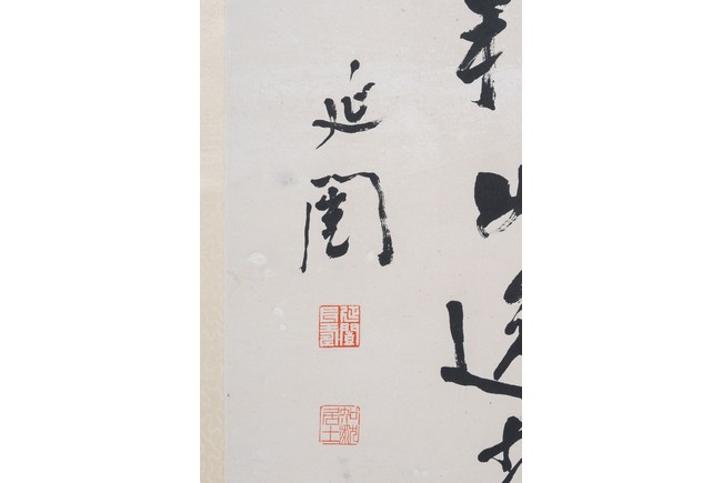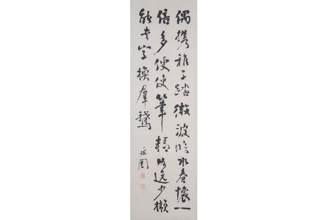 Ink on paper. Calligraphy. Signed Xu Tong with two seal marks of the artist. Hanging scroll.