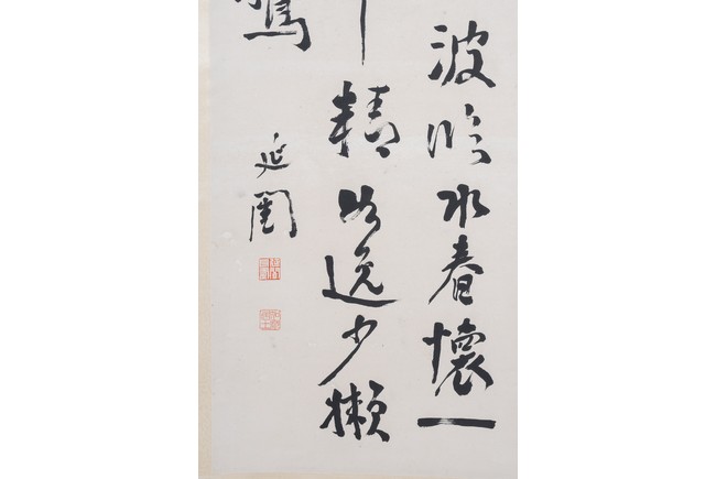 釋文: 偶攜稚子踏微波,臨水春懷一倍多,便使筆精如逸少,懶能書字換群鵝。延闓。鈴印:延闓長壽,知默居士。 作者介紹: 譚延闓, 字組庵,號無畏、切齋,與陳三立、譚嗣同並稱“湖湘三公子”,民國時期著名政治家、書法家、組庵湘菜創始人。曾經任兩廣督軍,三次出任湖南督軍、省長兼湘軍總司令,授上將軍銜,陸軍大元帥。曾任南京國民政府主席、行政院院長。