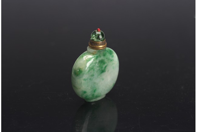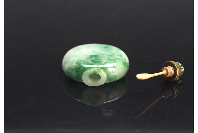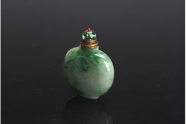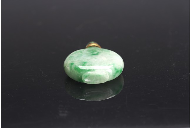 The stone of bright emerald and apple green color with white inclusions. Qing Dynasty period.