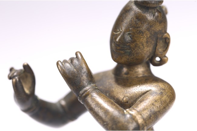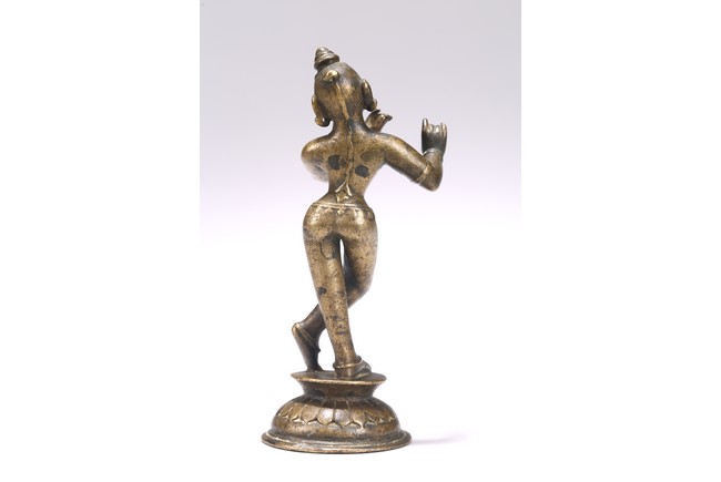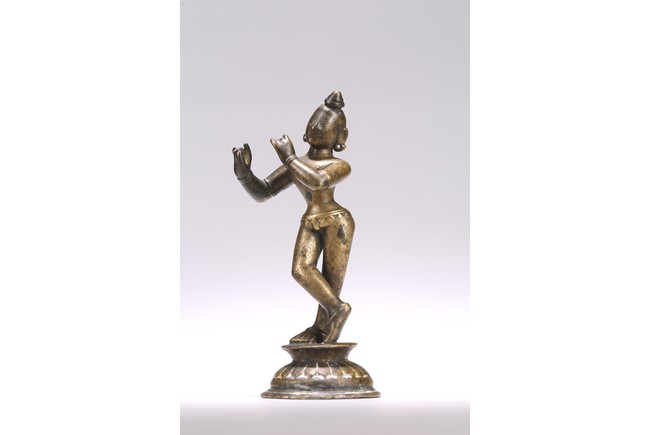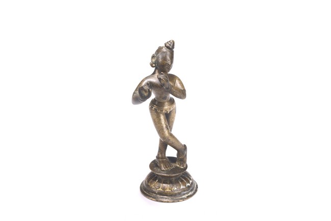 The figure standing with legs crossed on a plinth, hands holding as if playing a flute. 12th/13th century, Pala, East India.